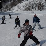 スキー初めてさんは板のはき方から始まってハの字で上手に滑れるようになりましたね!この時期珍しく天気も良くて、とっても気持ちの良いスキー日和でしたね!